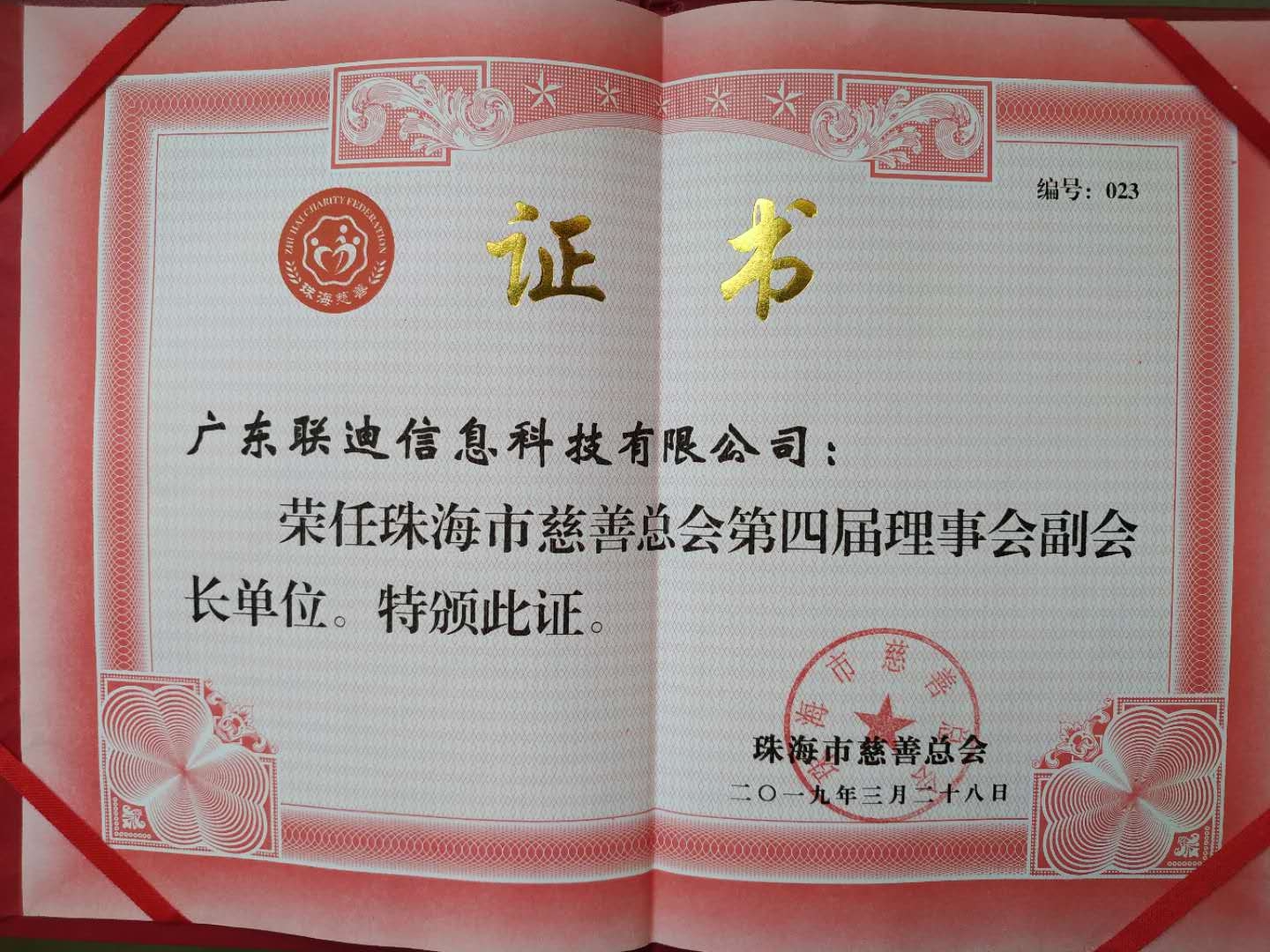 恭喜联迪荣获珠海市慈善总会第四届理事会副会长单位。