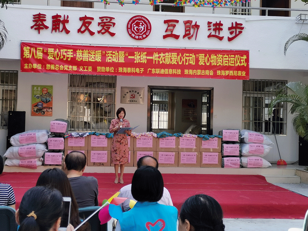 11月3日上午,由珠海市慈善总会党支部和义工委主办的第八届“爱心巧手·慈善送暖”暨“一张纸一件衣献爱心行动”在珠海市慈善总会正式起运。珠海市慈善总会党支部党员、慈善义工及广东联迪信息科技有限公司、珠海市内蒙古商会等各界爱心代表50多人出席。